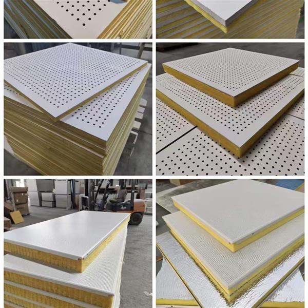 声立方硅酸钙复合玻璃棉吸音板岩棉穿孔隔音板吊顶装饰材料天花板吸音板